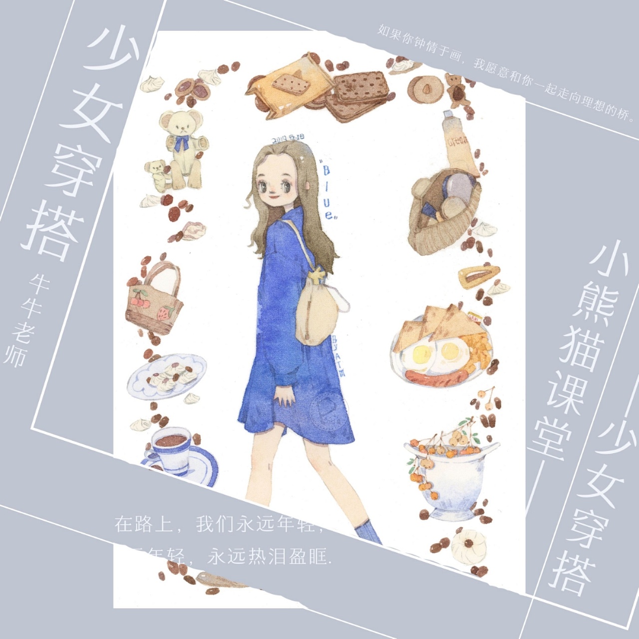 水彩教程头像壁纸少女萌宝森系治愈卡通手绘插画绘画